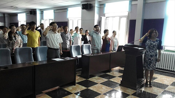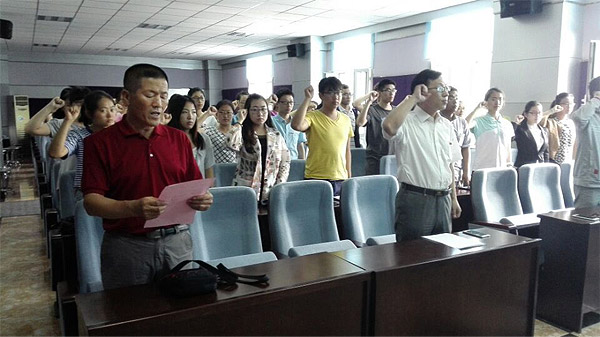 为了弘扬和传承中国共产党的精神,为党组织增添新鲜血液,2015年7月1日污污韩漫 举行了庆祝建党94周年暨预备党员入党仪式。污污韩漫 党委书记钟绍峰、副书记兼副院长刘丽、学生工作办公室主任吴晓辉,团委书记苏国范、党务秘书曲超、院工会主席胡志宏老师以及41名新党员参加了此次大会。会议由副书记兼副院长刘丽主持。 入党宣誓仪式在庄严的《国际歌》中拉开帷幕。首先由副书记兼副院长刘丽宣读41位入党同学名单并对他们表示祝贺。随后,在老党员胡老师的带领下,41名预备党员举起右拳,面对鲜红的党旗齐声宣读入党誓词,向党组织做出了庄严宣誓。12级董雪洁同学代表新党员进行了发言。她发达了此时激动的心情,并感谢党组织与老党员的热切关怀,表明要认真学习党章,积极向党组织靠拢,充分发挥党员的模范作用,努力成为合格的中国特色社会主义事业的建设者和接班人。最后,党委书记钟绍峰发表讲话,指出入党宣誓仪式是加入党组织的重要环节,也是对新老党员一次深刻的党性教育,同时也是对建党94周年的纪念。鼓励党员特别是新党员要回顾历史,学习东北抗联精神,并提出坚定信念、牢记宗旨;遵守纪律、树立形象;加强学习、增强本领这三点想法,同时表达了对新党员的希望,最后,赢来了同学们阵阵掌声。 此次宣誓仪式,旨在培养优秀的党员,为党组织带来更有活力的新因子,为污污韩漫 学生树立榜样,让更多的青年学生积极向党组织靠拢,在党的带领下不断前进,为我们国家建设做出贡献。