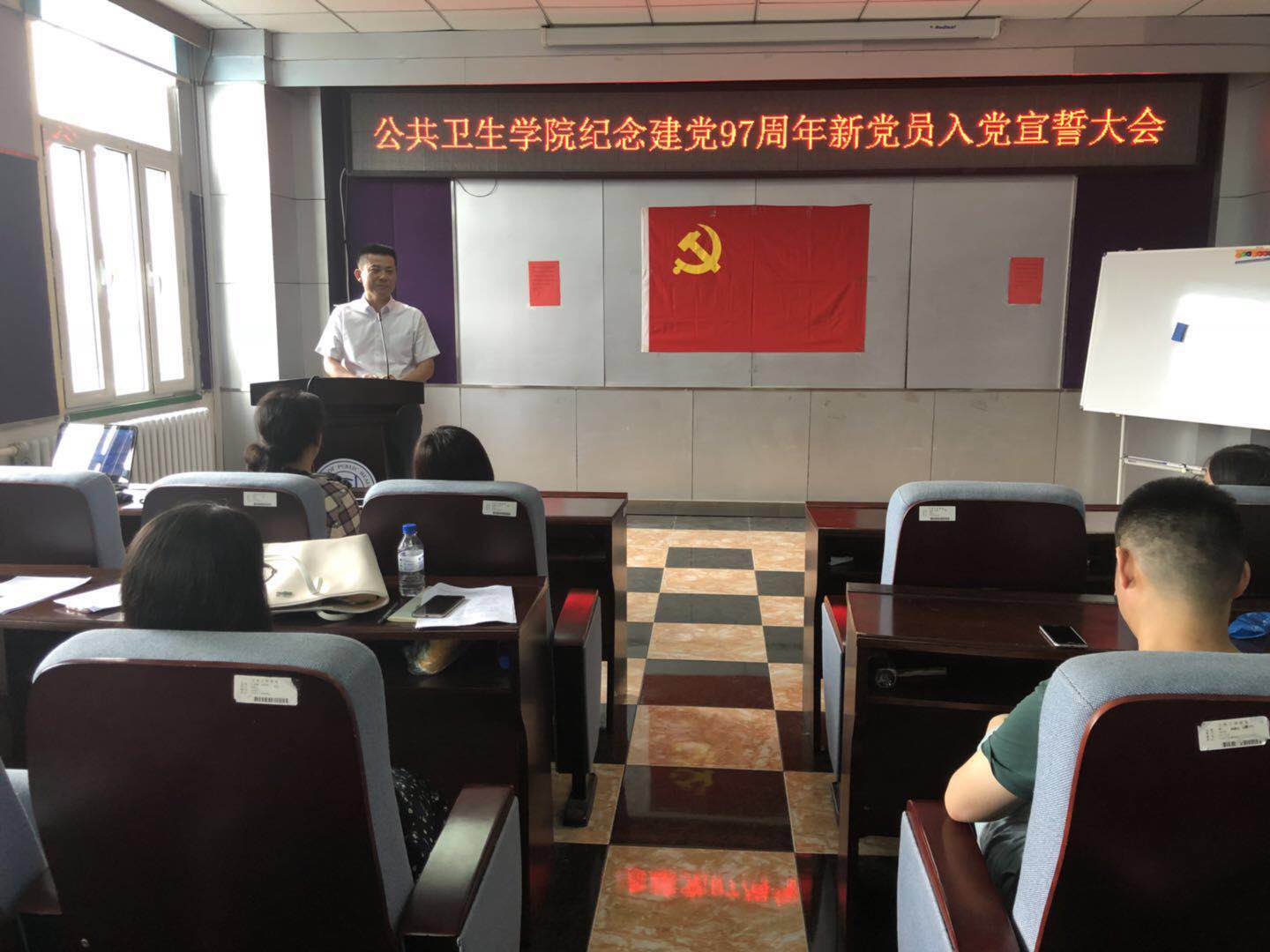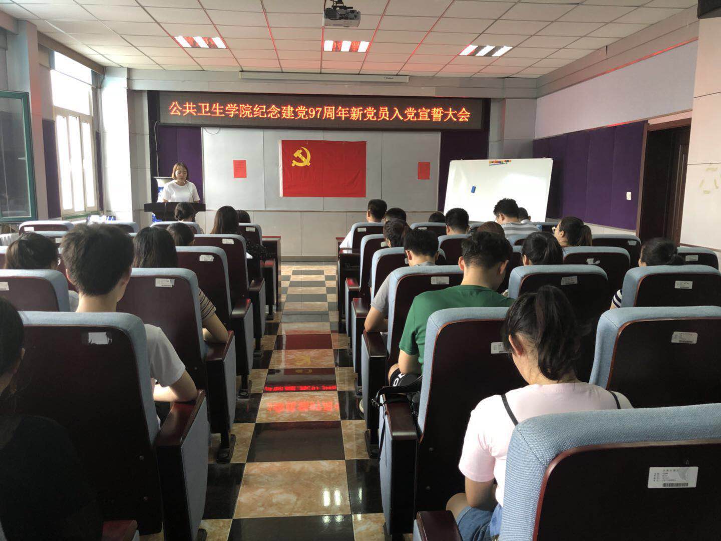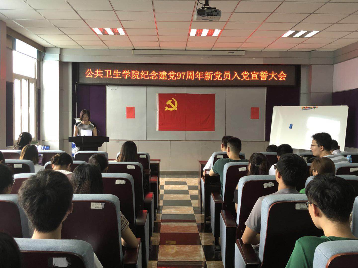 党委在学院办公楼三楼报告厅隆重召开“庆祝中国共产党建党97周年新党员入党宣誓大会”,污污韩漫