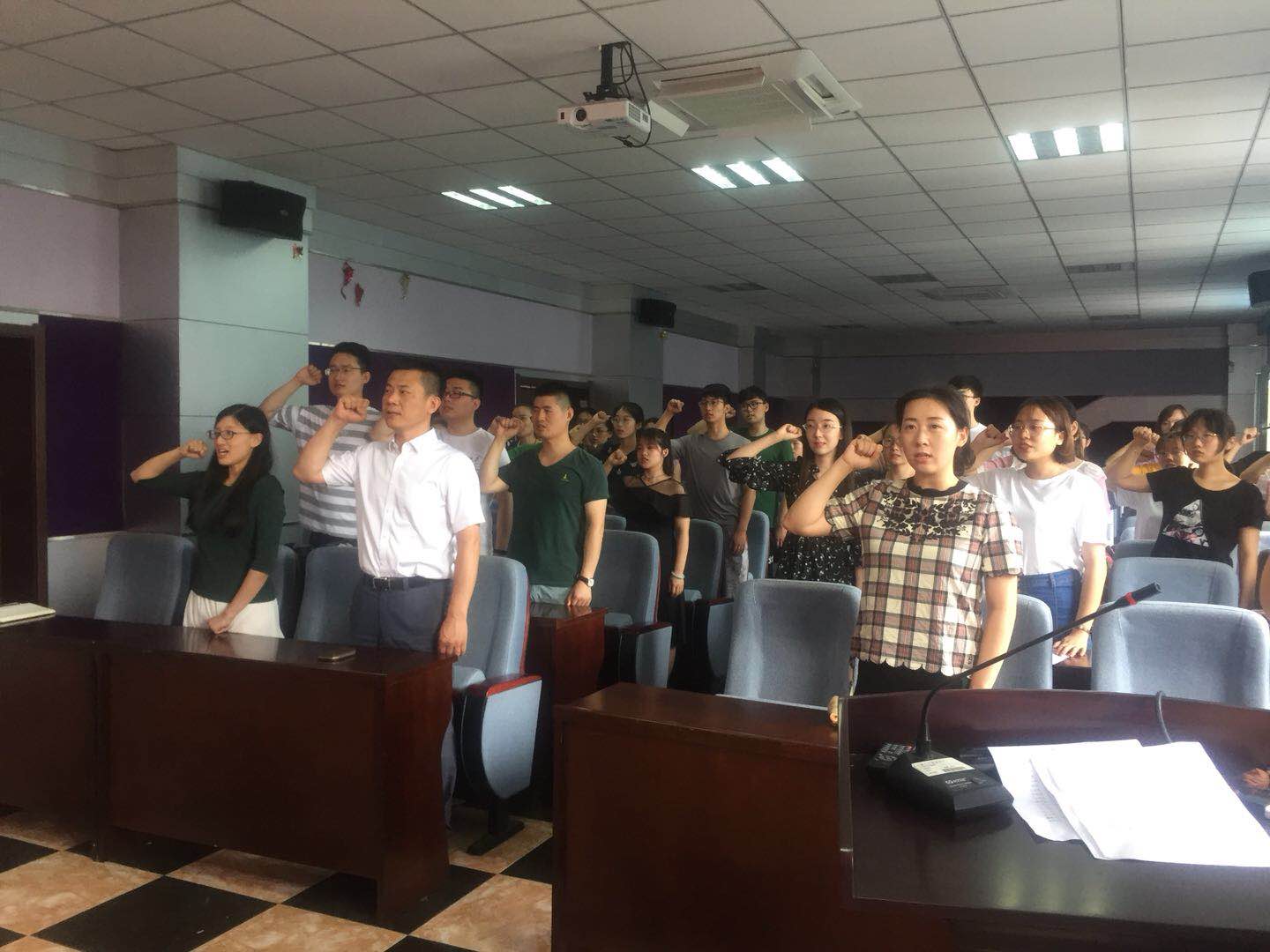 宣誓仪式在庄严的《国际歌》中拉开序幕,刘丽副书记宣读了新党员名单。随后,在学生工作办公室主任苏国范的带领下,全体党员右手握拳,面向党旗,郑重宣誓。新老党员代表纷纷发言,不仅表达了自己对党的热情与忠贞,更是提出了高标准高要求,要为之奋斗。