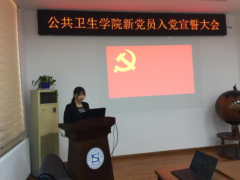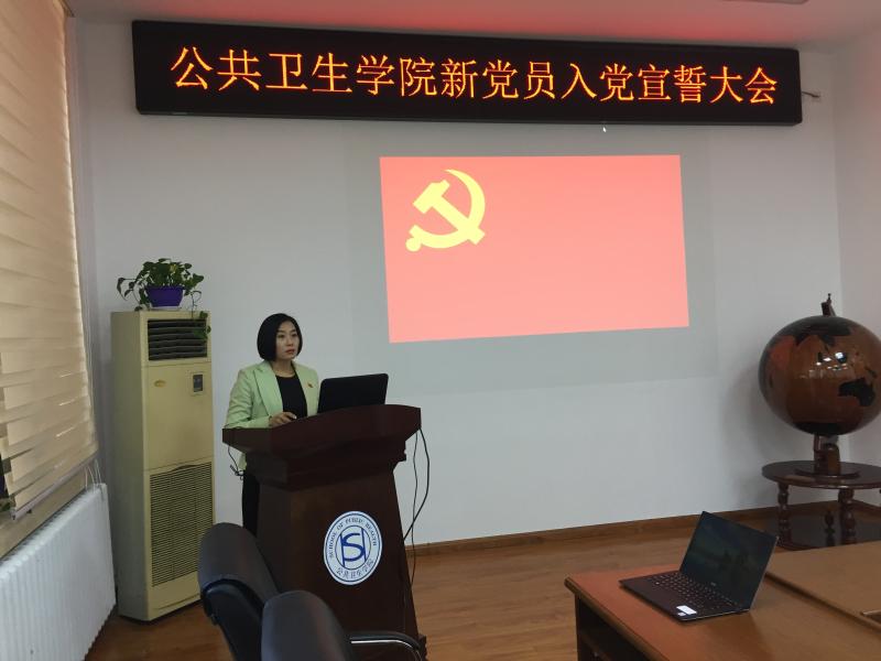 宣誓仪式在庄严的《国际歌》中拉开序幕,刘丽副书记宣读了新党员名单。随后学生工作办公室主任苏国范领誓,19名新党员面向党旗、举起右手,庄严向党旗宣誓,表达对党的忠诚和决心,参会老党员也与新党员一同重温入党誓词,忆念入党初心。宣誓结束后,新教师党员代表杨书满同志、新学生党员代表刘嘉悦以及老党员代表分别结合自身工作和学习进行发言,做出承诺,提出期许,互勉互励,不仅表达了自己对党的热情与忠贞,更是提出了高标准高要求,要为之奋斗。