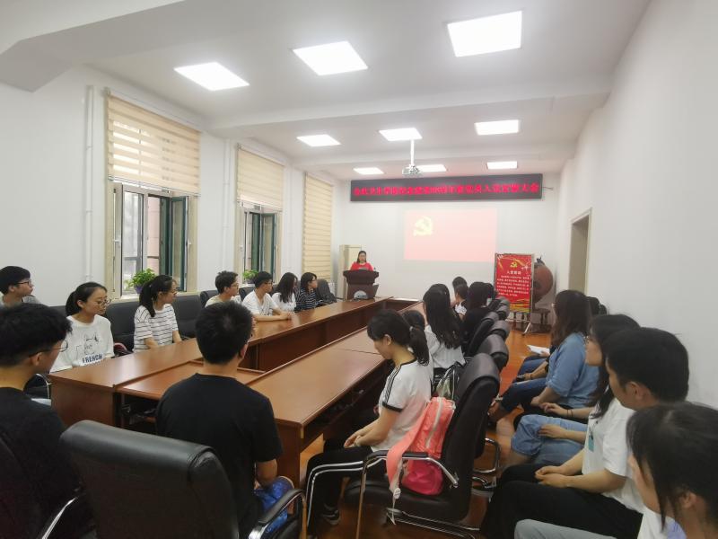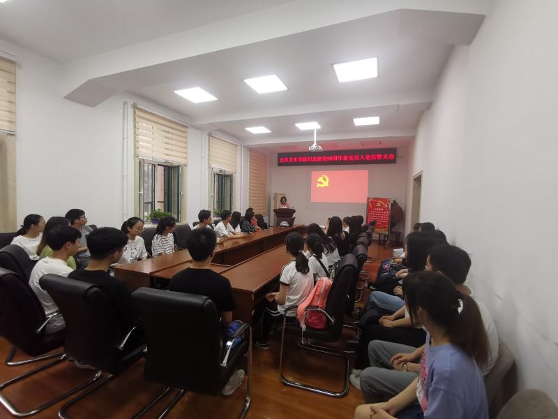 党委副书记兼副院长、纪委书记刘丽、党委办公室主任曲超、2016级辅导员霍睿及本学期所有新发展的31名党员参加了会议。会议由曲超主持。