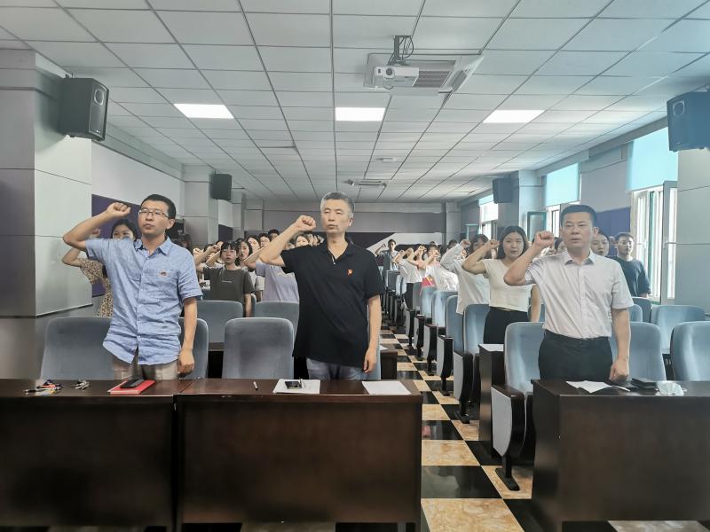 最后,由赵国利书记为新老党员讲了一场题为“学好党的历史,奋进新时代”的党课,他指出入党宣誓仪式是加入党组织的重要环节,也是对新老党员一次深刻的党性教育,让老党员回顾初心,让新党员看到希望。同时对大家提出三点希望:1、要不忘初心,牢记使命,时刻牢记为人民服务的宗旨,为人民谋幸福,为国家谋复兴;2、要在学习工作中发挥党员的先锋模范作用,时刻以党员标准要求自己,维护党员的形象;3、要坚定理想信念,努力践行自己的入党誓词,不断以更高的标准要求自己,追求进步。赵国利书记以习总书记在建党百年讲话中的两段为结尾:未来属于青年,希望寄予青年。新时代的中国青年要以实现中华民族伟大复兴为己任,增强做中国人的志气、骨气、底气,不负时代,不负韶华,不负党和人民的殷切期望!二是习近平总书记向全党发出号召:全体中国共产党党员,党中央号召你们,牢记初心使命,坚定理想信念,践行党的宗旨,永远保持同人民群众的血肉联系,始终同人民想在一起,干在一起,风雨同舟,同甘共苦,继续是为实现人民对美好生活的向往不懈努力努力,努力为党和人民争取更大的光荣!