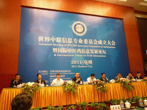 2011年9月9日~10日,世界中医药学会联合会信息专业委员会成立大会暨首届中医药国际信息化发展论坛会议在安徽省亳州市举行。本次会议由世界中医药学会联合会及亳州市政府共同主办,世界中医药学会联合会信息专业委员会、中国中医科学院中医药信息研究所及北京盛世国康医药信息咨询有限公司承办。来自中国、美国、加拿大、新加坡、新西兰、意大利、中国香港和澳门等国内外120余位代表参加了本次论坛。