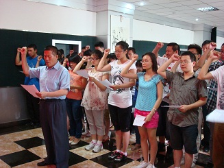 党委在学院三楼报告厅举行了新生党员宣誓仪式。仪式由学院党委副书记兼副院长于洗河主持。