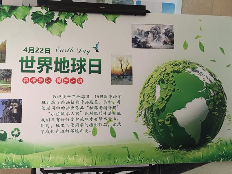 医事法学专业特举办“保护地球,保卫家园”的宣传活动,本次活动以,2015级医事法学班的主题班会为主题,2015级医事法学班全体同学于4月15日在朝阳公园举行了“保护地球,从身边做起”的回收环保活动。同时,还积极制作世界地球日主题展板,并在污污韩漫