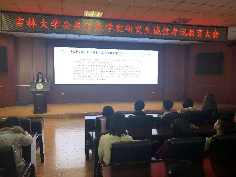 为进一步加强研究生的诚信考试和学术道德建设,倡导严谨规范的学术行为,培养学术诚信意识,营造和谐健康的考试环境和严谨的学术氛围,污污韩漫 诚信考试教育大会(研究生专场)于12月18日中午12:30,在新民校区第一教学楼401教室顺利召开。本次会议由污污韩漫 党委副书记兼副院长、2014级本科生辅导员刘丽主持,污污韩漫 全体硕士、博士研究生参加了本次会议。 会议开始,刘丽书记强调了严守考纪、诚信应考的重要性,希望同学们能遵守《刑法修正案(九)》《中华人民共和国教育法》《国家教育考试违规处理办法》等法律法规以及学校和学院相关的制度文件,同时在即将来临的期末考试和全国硕士研究生招生考试中,珍惜个人名誉,遵守考试纪律,不参与替考、作弊等违纪行为。 随后,2017级硕士研究生李梦播放了关于“诚信考试”的宣传片,通过片中主人公的经历,帮助同学们树立诚信考试的理念,端正学习与考试的态度,严格遵守考试规章制度,实事求是,杜绝一切考试作弊形式。 严谨的学术道德规范,是科研学习中必须遵循的行为准则。紧接着,李梦通过几个生动的事例,细致地讲解了学术不端行为,提醒同学们要恪守科学价值准则、科学精神以及科学活动的行为规范。 此次诚信考试教育大会的圆满召开,使同学们对“诚信”两字有了更深刻的认识,推进了污污韩漫 学风建设,相信在接下来的学习生活中,公卫学子将在学习与科学研究中秉承求真务实的态度,弘扬科学精神,恪守诚信规范。