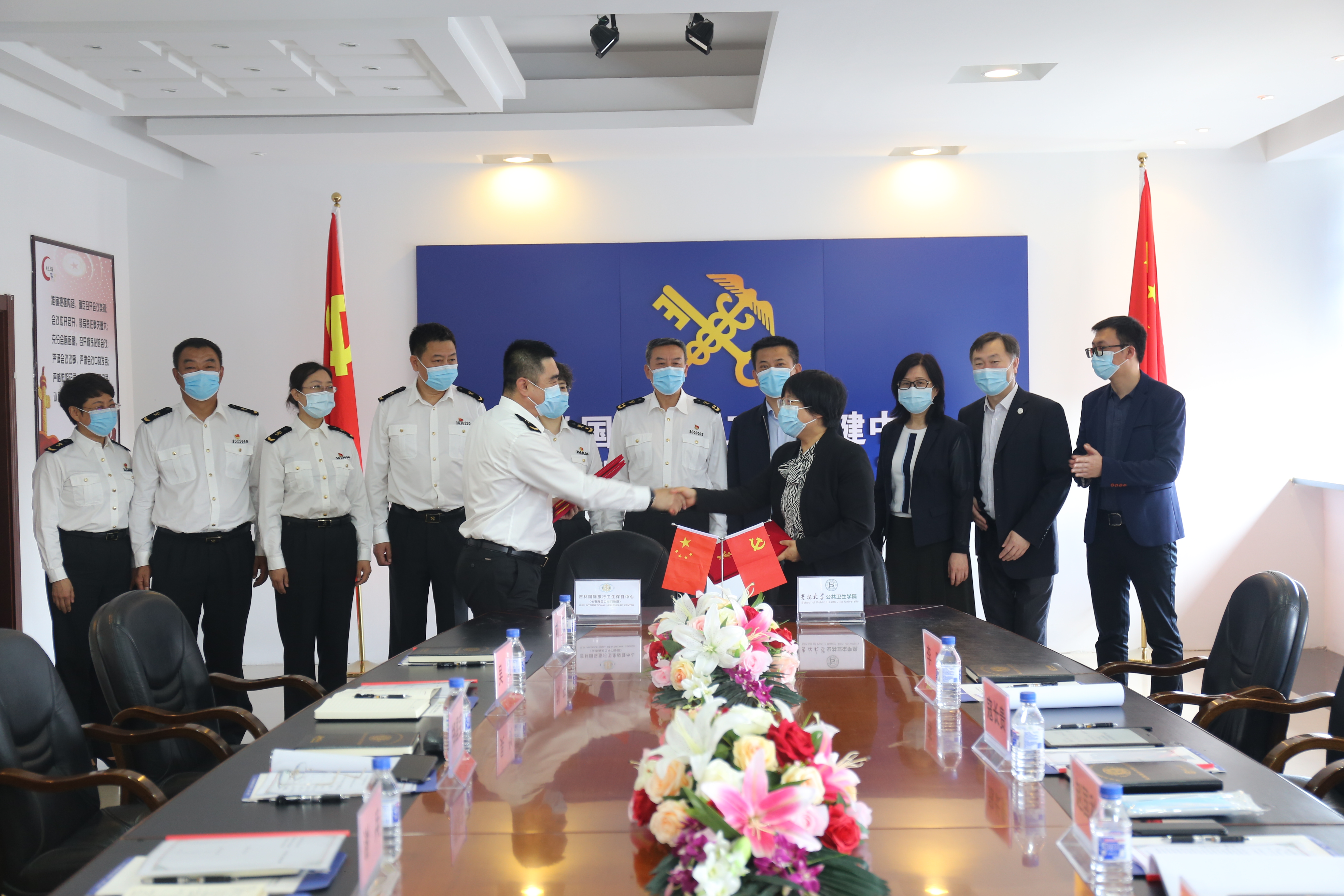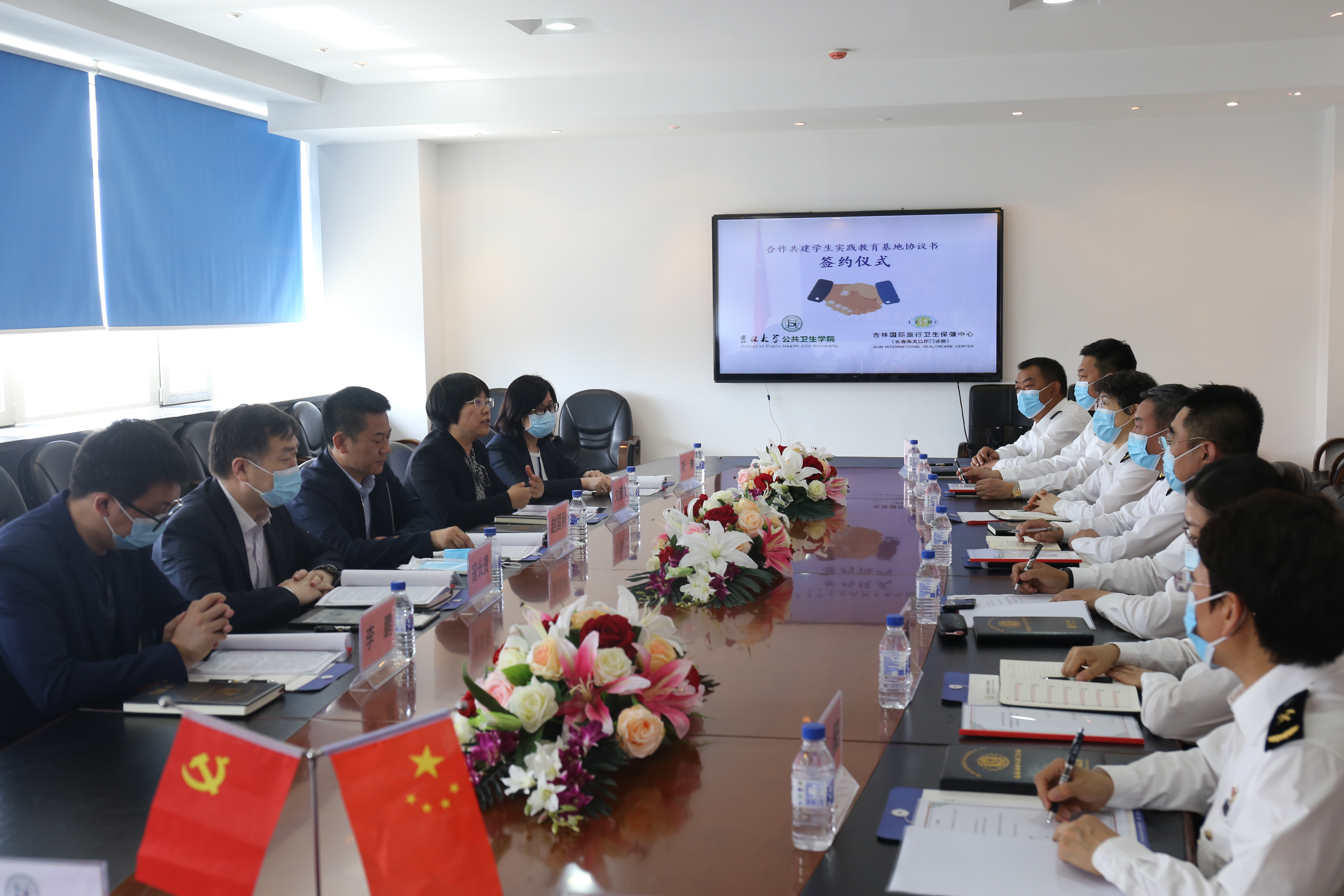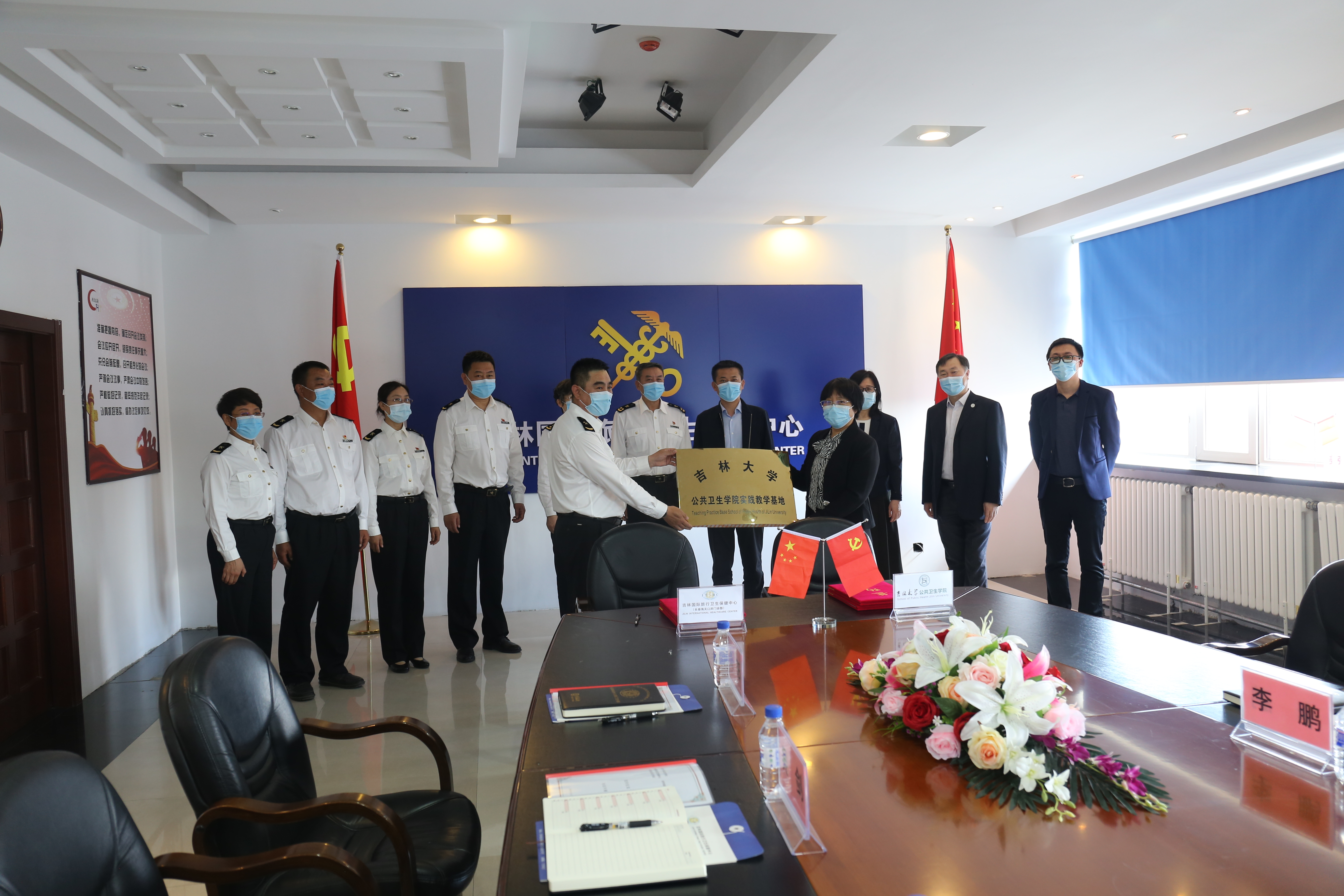与吉林国际旅行卫生保健中心(长春海关口岸门诊部)隆重举行本科实践教学基地挂牌仪式。出席本次仪式的有长春海关副关长谢兵、长春海关卫检处处长邵丽筠、吉林国际旅行卫生保健中心主任郑昌保、保健中心副主任刘琦、保健中心副主任吴剑、保健中心副主任赵大力、保健中心纪委书记刘阳;污污韩漫