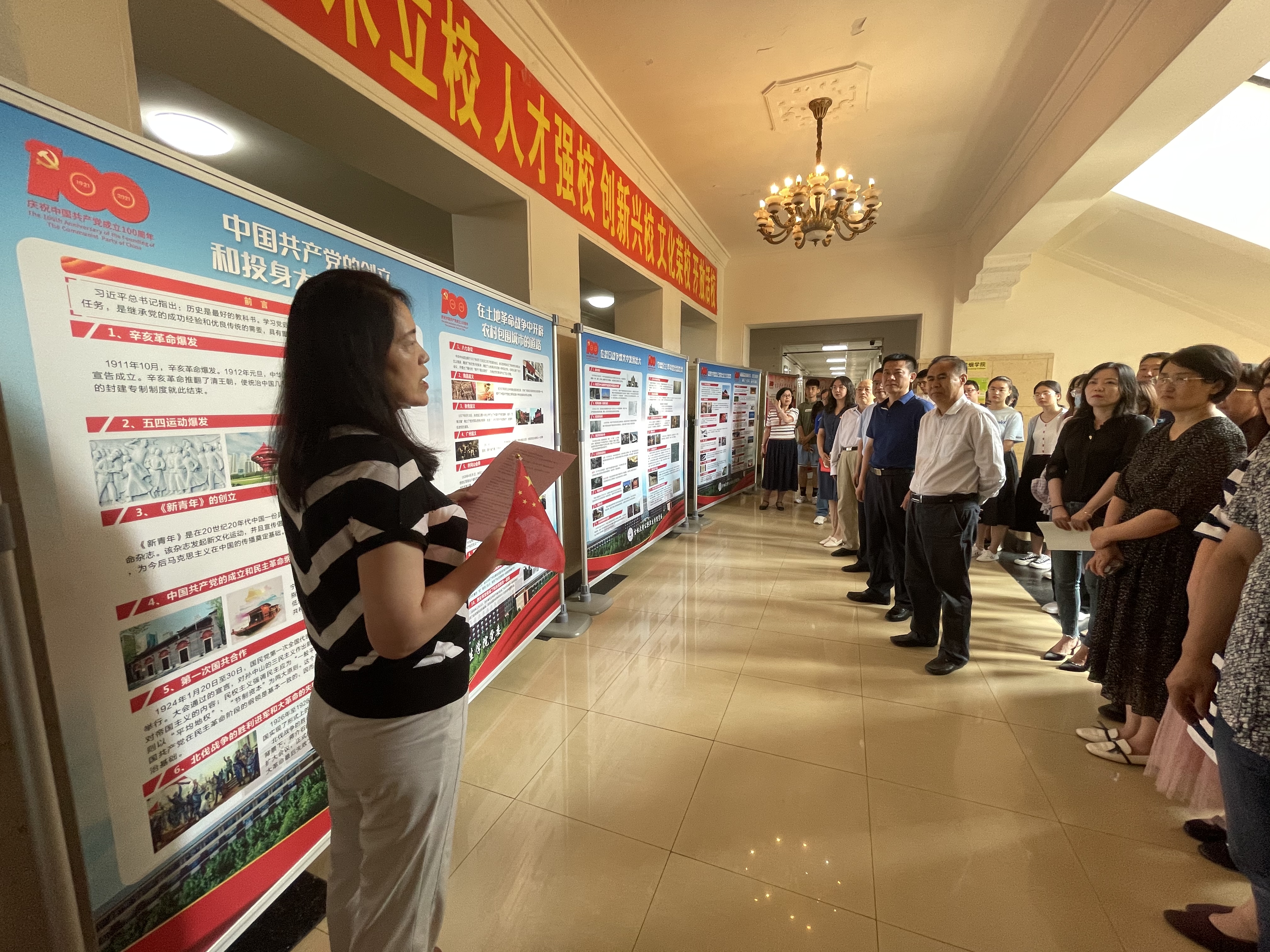 624日下午,污污韩漫 党委在学院二楼大厅,举办“学百年党史.育家国情怀”图片展活动,参加活动的有学院班子成员、党委委员、纪委委员、支部书记、科(系)主任。