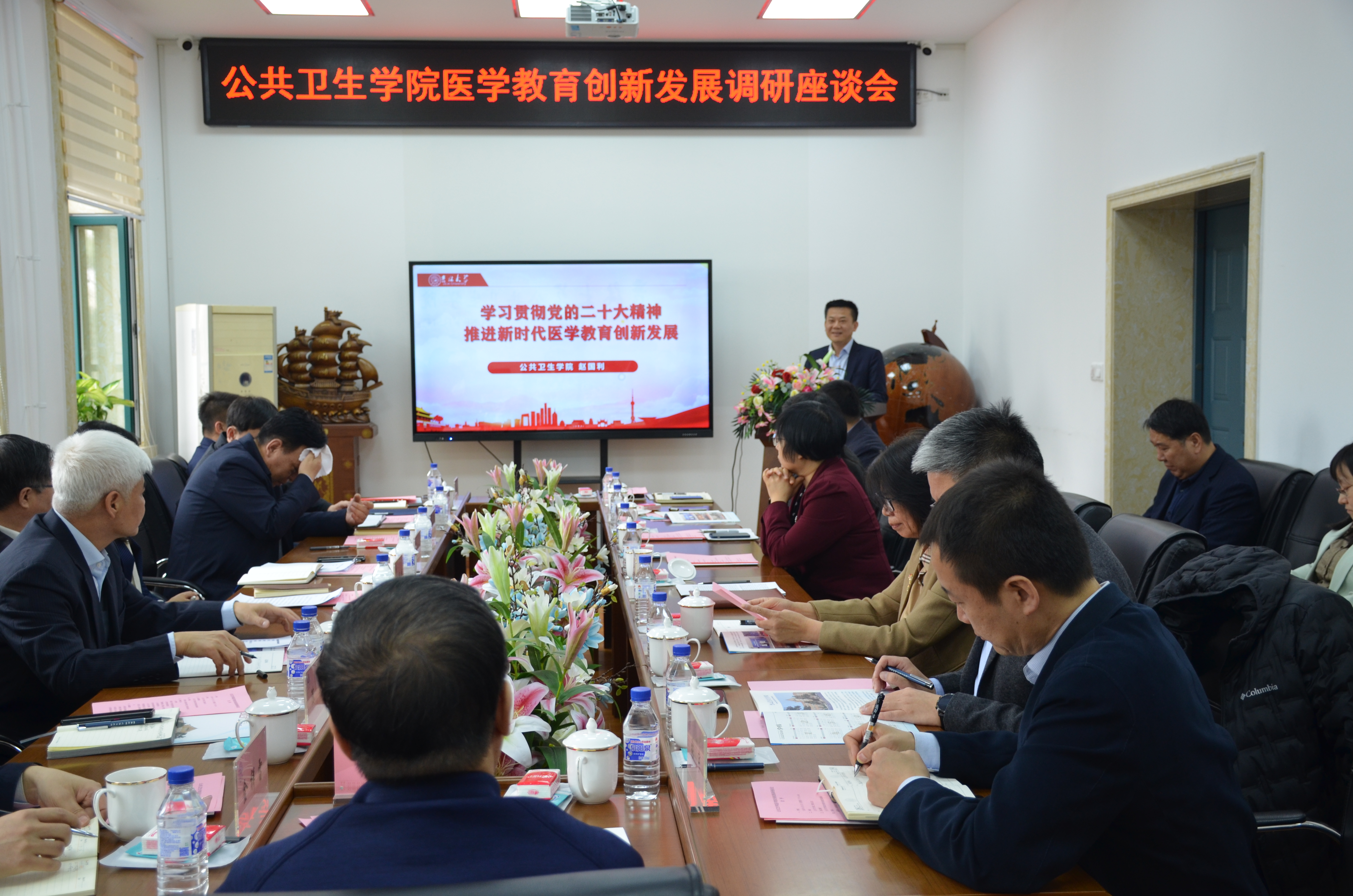 院长刘雅文围绕学院开展高质量推进医学教育创新发展工作进行汇报。近年来,学院以“三大工程”为抓手,对标“十三五”和“十四五”规划目标的各项任务,在学科建设、平台建设、师资队伍建设、本科教学和研究生培养等方面取得了长足进步。通过积极努力,2020年全国首批十家,东北地区唯一的“高层次应用型公共卫生人才培养创新项目”基地落成,2021年“吉林省公共卫生与辐射安全协同创新中心”成立,2022年“高水平污污韩漫