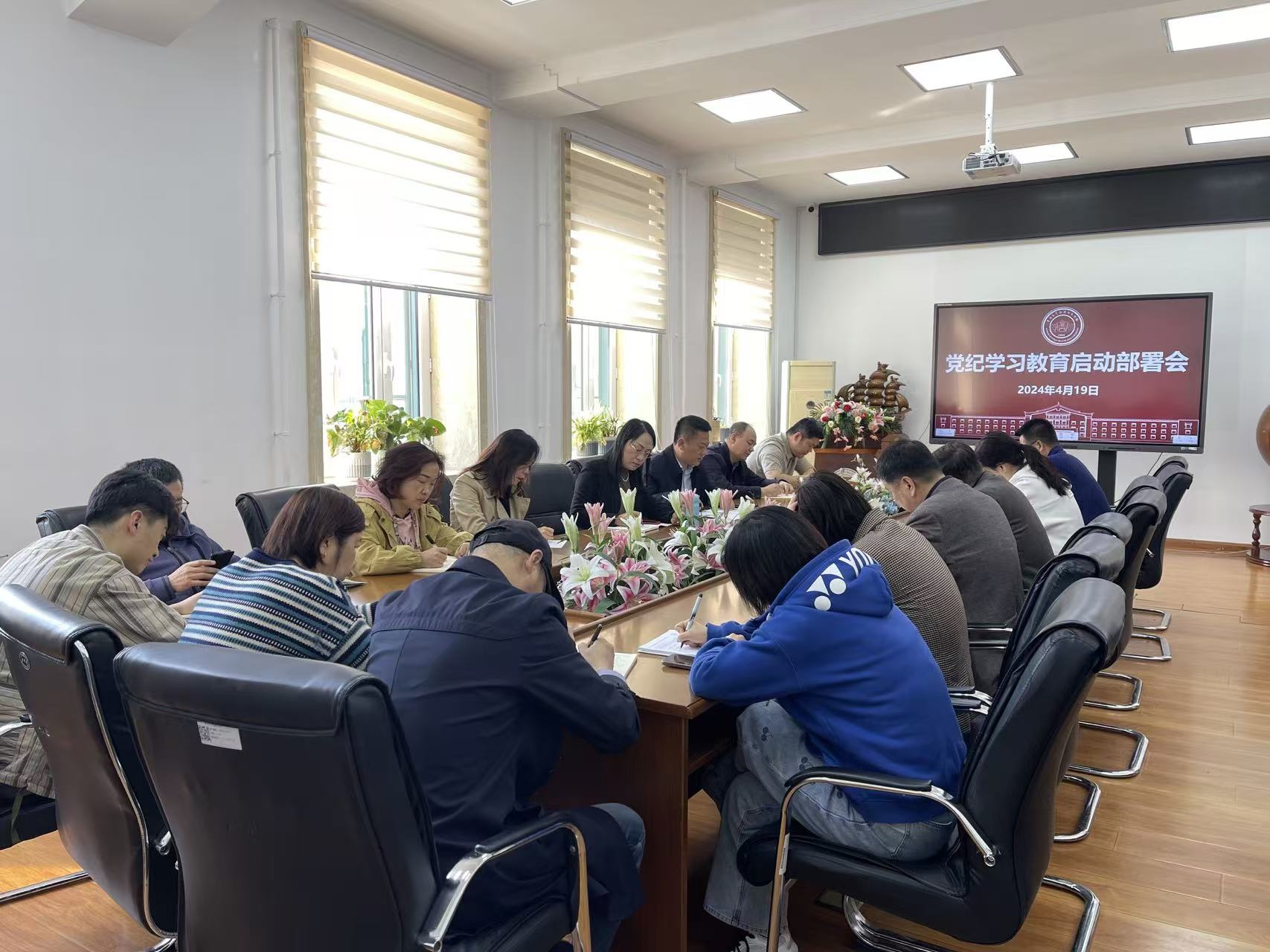 党委在学院二楼会议室召开党纪学习教育工作启动部署会议暨警示教育大会,会议由学院党委书记赵国利主持,学院党委委员、纪委委员、各党支部书记参会。