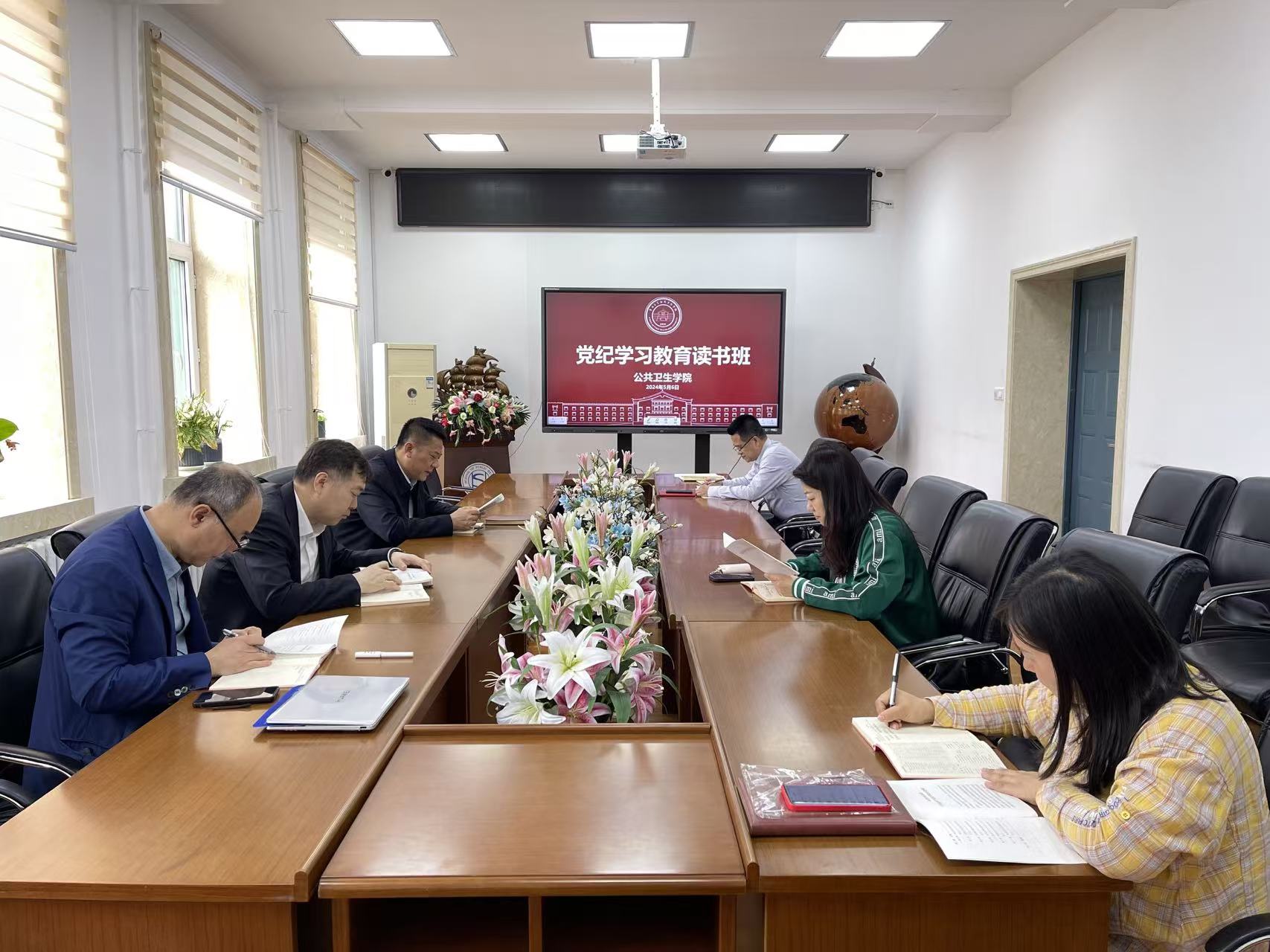 于2024年5月6日上午,在学院二楼会议室召开党纪学习教育读书班第一次集中学习,全体班子成员参会。学院党委书记赵国利主持会议。