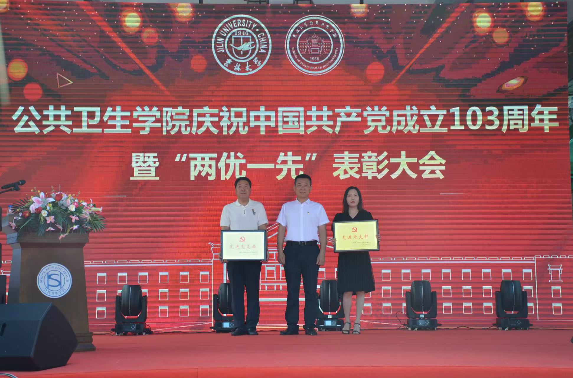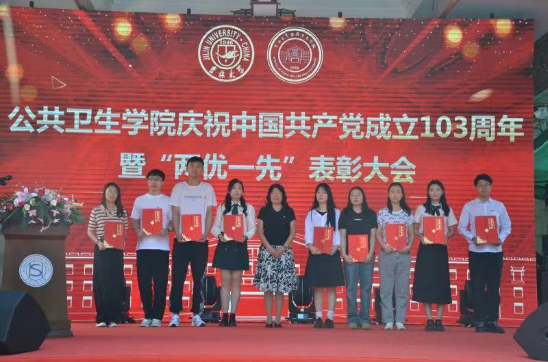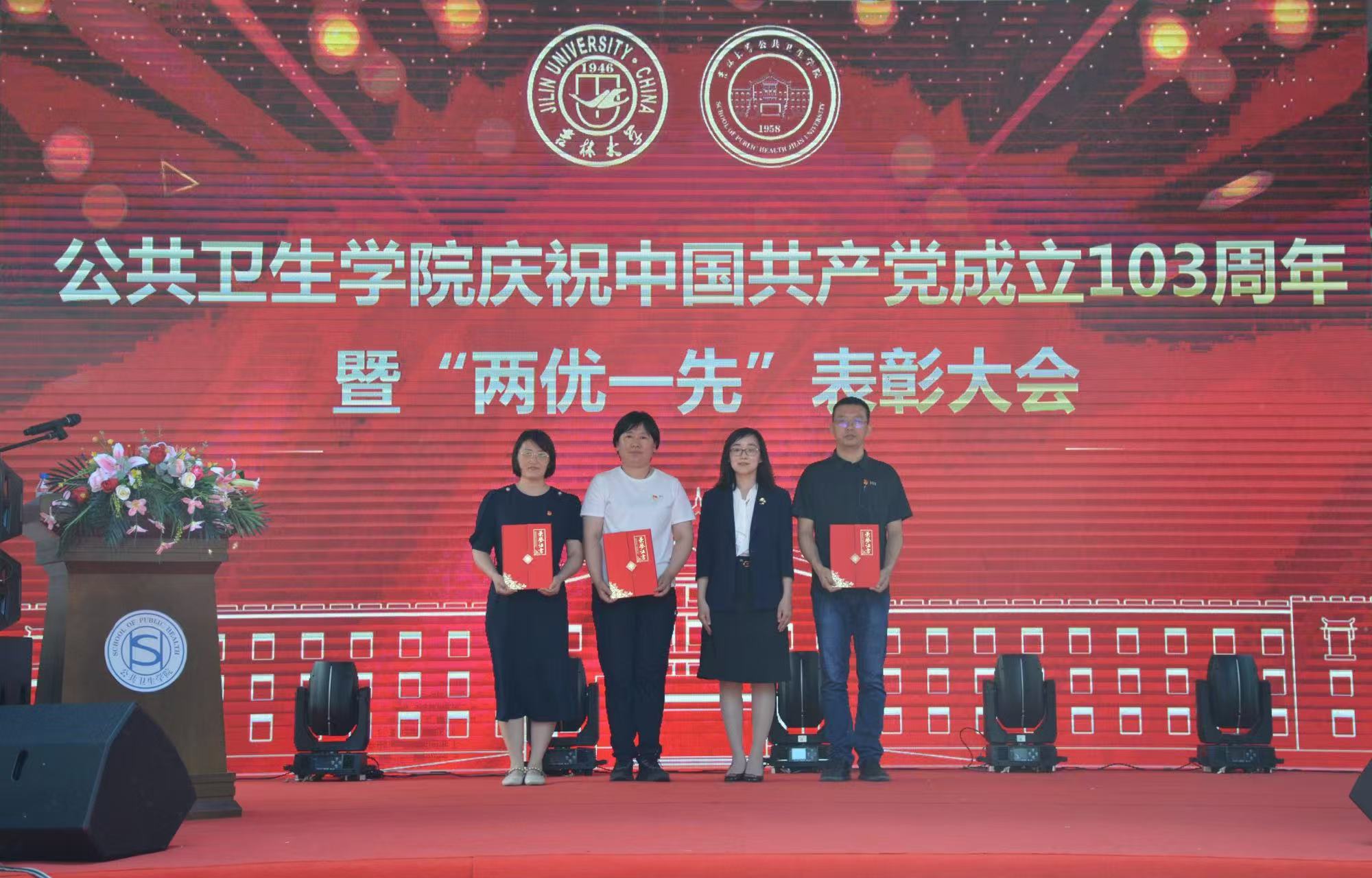 庆祝中国共产党成立103周年暨“两优一先”获奖名单》。学院党委书记赵国利、副院长寇长贵、副院长王志成、副院长王娟、党委委员李娟、党委委员金顺子先后为学院优秀共产党员、优秀党务工作者、先进党支部颁奖。