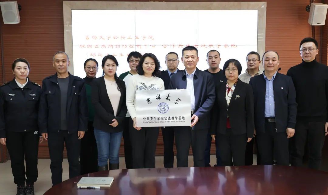 随后,在与会嘉宾的共同见证下,刘雅文院长与区疾控中心(卫监所)宋立辉主任共同签署了合作协议,学院党委书记赵国利与绿园区卫健局局长刘雪芹共同为基地揭牌。