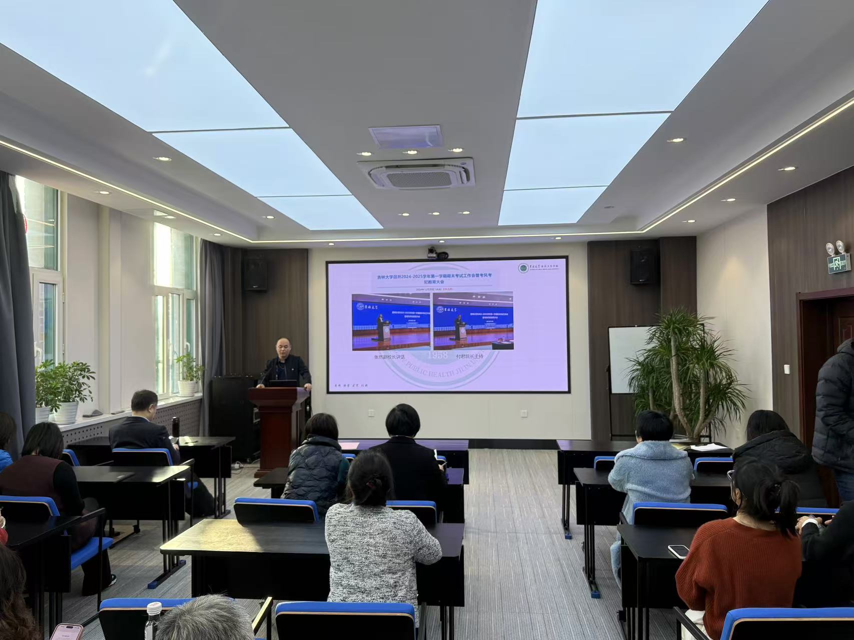 在三楼多功能报告厅召开2024—2025学年第一学期期末考试工作会议。学院各系、教研室、实验教学中心全体教师及监考人员参会。会议由教学副院长王志成主持。