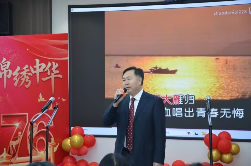 学院党委书记刘金超在致辞中表示,在庆祝新中国成立76周年暨中国人民抗日战争暨世界反法西斯战争胜利80周年之际,举办这样的活动既丰富了教职工文化生活,也是一次深刻的爱国主义教育。通过歌声,老师们表达了对历史的铭记、对和平的珍视和对未来的信心。
