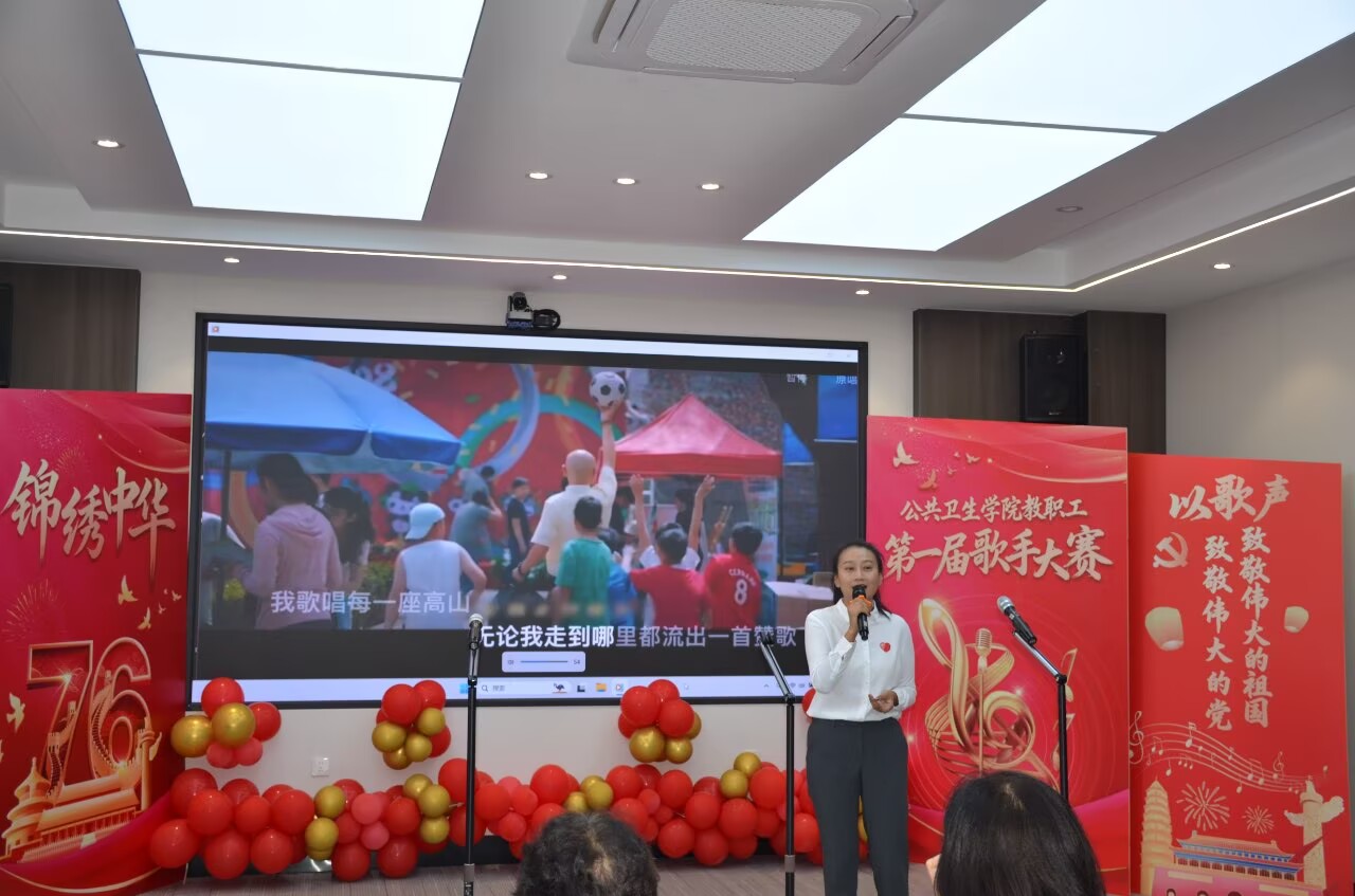 在9月28日举行“喜迎华诞,声动公卫”首届教职工歌手大赛。全院教职工齐聚一堂,用歌声表达对祖国的深情祝福,共同庆祝这一具有特殊意义的历史时刻。