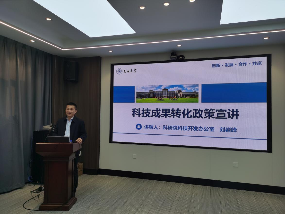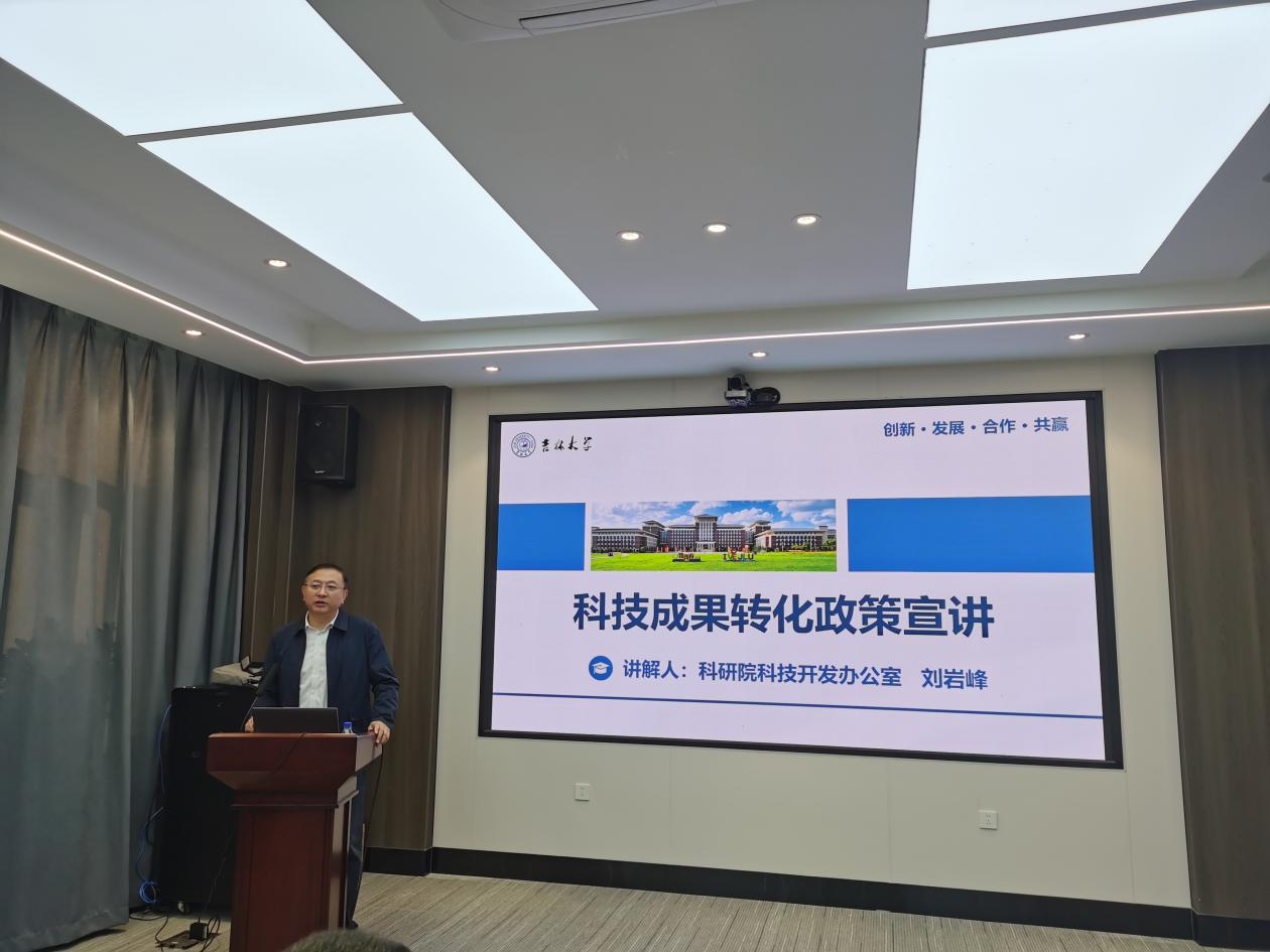 邀请科研院副院长兼科技开发办公室主任、国内合作处处长刘岩峰作科技成果转化政策宣讲会,技术转移科科长徐婉、朱梓瑞老师、污污韩漫