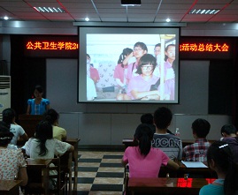在学院三楼报告厅举行了2012年暑期“三下乡”社会实践活动总结大会,学院学生工作办公室苏国范老师以及全体三下乡社会实践活动志愿者参加了此次总结大会。参与健康体检的各组同学代表在总结会上发表了精彩的发言,农安之行一组的志愿者由2011级预防二班的杨艳荣以及庞博同学代表发言,他们感情真挚,表达了自己对这次活动的感激与不舍,畅谈了自己在下乡过程的感动与成长。