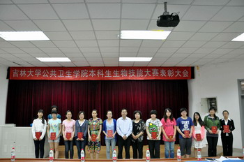 本科生生物实验技能大赛表彰大会。学院党委副书记兼副院长于洗河、副院长刘雅文,科教研办公室李鹏,学生工作办公室主任吴晓辉、辅导员李茵、苏国范、郭倩君及11、12级部分同学出席了此次会议。