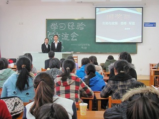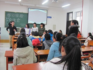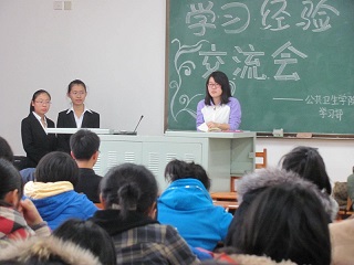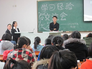 于李四光楼314教室开展了预防医学系学习经验交流会。此次交流会由学生会学习部举办,学习部工作人员、4位成绩优异的预防医学系大二学生和全体预防医学系大一新生参加了此次交流会。