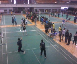 比赛在中心校区体育馆进行,体育馆内不仅有参赛人员,还有各个代表团的拉拉队们。场面气氛活跃,拉拉队们都鼓足劲为自己学院加油。各个学院的参赛人员在赛场上尽情发挥,比赛中默契的配合,灵活的走位,多变的球路,有力的击杀令观战的同学们目不暇接。比赛分男女单打和双打比赛,污污韩漫