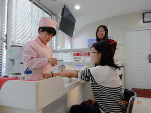 血站志愿服务活动采取轮班制方式,每个献血屋安排两名同学进行志愿服务。活动中志愿者们认真负责地帮助工作人员进行采血工作,并为献血者提供优质周到的服务,具体包括提醒献血者穿戴鞋套,协助献血者填写《无偿献血登记表》,帮助工作人员为献血者量血压,验血合格、采血结束之后为献血者端送糖水、递送小点心,并且陪献血者聊天,消除他们紧张的情绪。16点快结束时,志愿者们主动打扫了血站卫生。志愿者认真负责的态度及热情真诚的服务,赢得了工作人员及无偿献血者们的认可与称赞。
