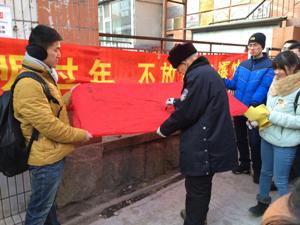 的青年志愿者联手同光路西社区,共同进行了“禁止燃放烟花爆竹”的宣传签字活动。