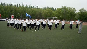 参加了学校在前卫校区田径场举行的第五十三届运动会学生组集体项目之第九套广播体操比赛初赛。