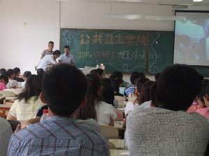 12级辅导员郭倩君的指导下,2014级全体辅导员助理组织级新生于在中心校区李四光教学楼102教室开始进行新生信息采集工作。
