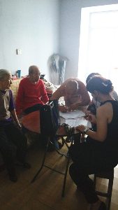学子勤学好问,虚心请教,将访问要点与注意点熟记于心。访问第一天,访问小组准备好体检设备及所需资料,前往了已经联系好的社区,并完成了场地准备。接下来的六天里,访问小组分别对入户进行了访问调查、医学体检以及膳食调查。访问期间,污污韩漫