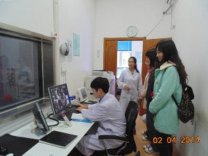 中午12点20分,放射专业的同学们准时在吉大三院一楼大厅集合,在两位放射专业实习医生的带领下,开始参观放射科。放射科是一个集检查、诊断、治疗为一体的科室,是医院重要的辅助检查科。两位实习医生先依次介绍了放射科的设备,包括普通X线拍片机、计算机 X线摄影系统、直接数字化X线摄影系统,CT、MRI、DSA等,在参观各种仪器的同时,实习医生还为大家讲解了放射科的规章制度、防护制度和其他相关知识。对于同学们的热情提问,实习医生也都耐心地解答,包括未来就业等诸多情况的疑问。通过对科室的参观,同学们对放射专业有了更深刻的理解,对未来就业也有了更多的憧憬。