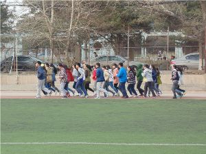 2013级预防医学二班的全体同学于新民校区体育场开展了本学期的阳光体育活动。
