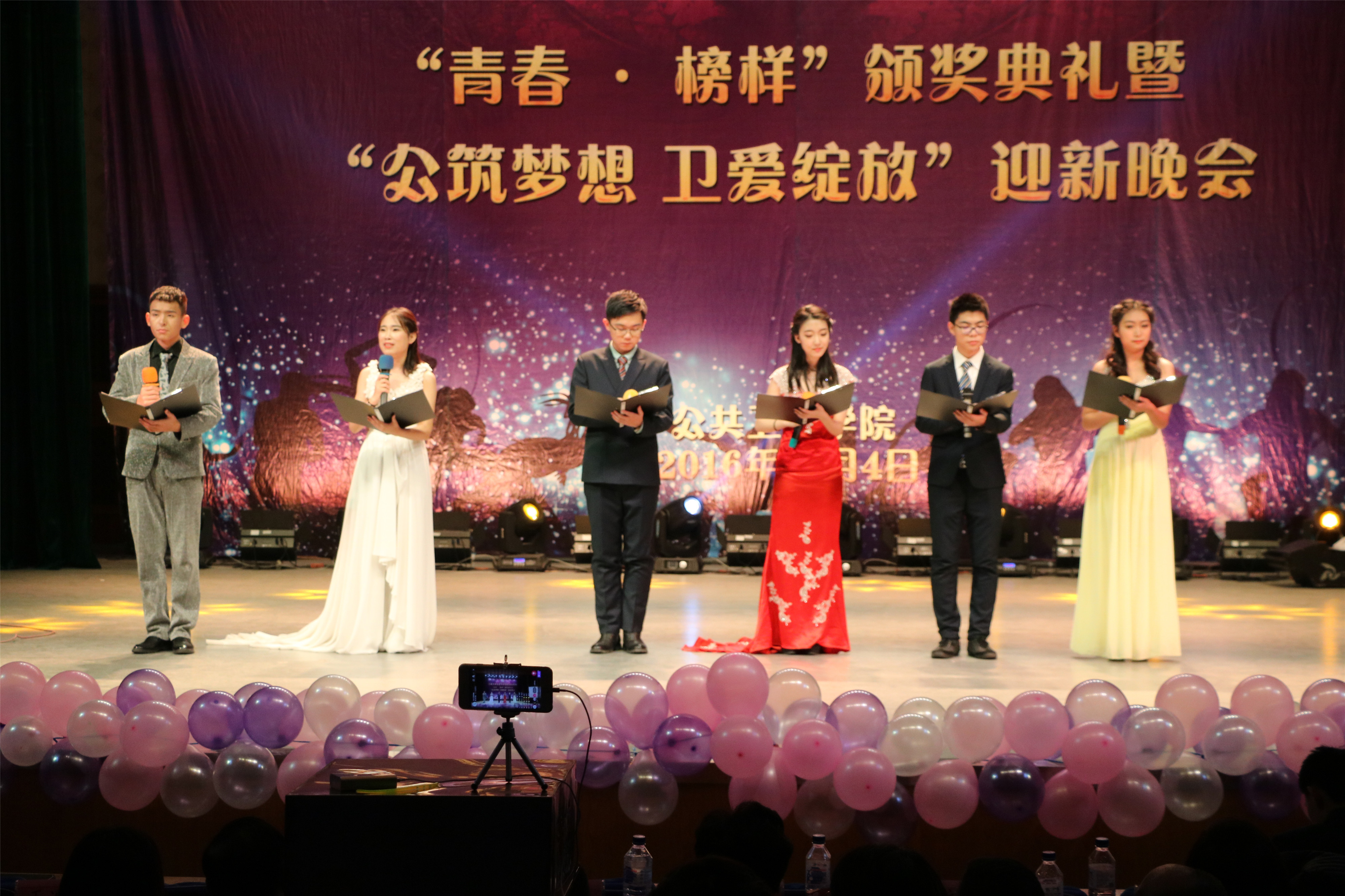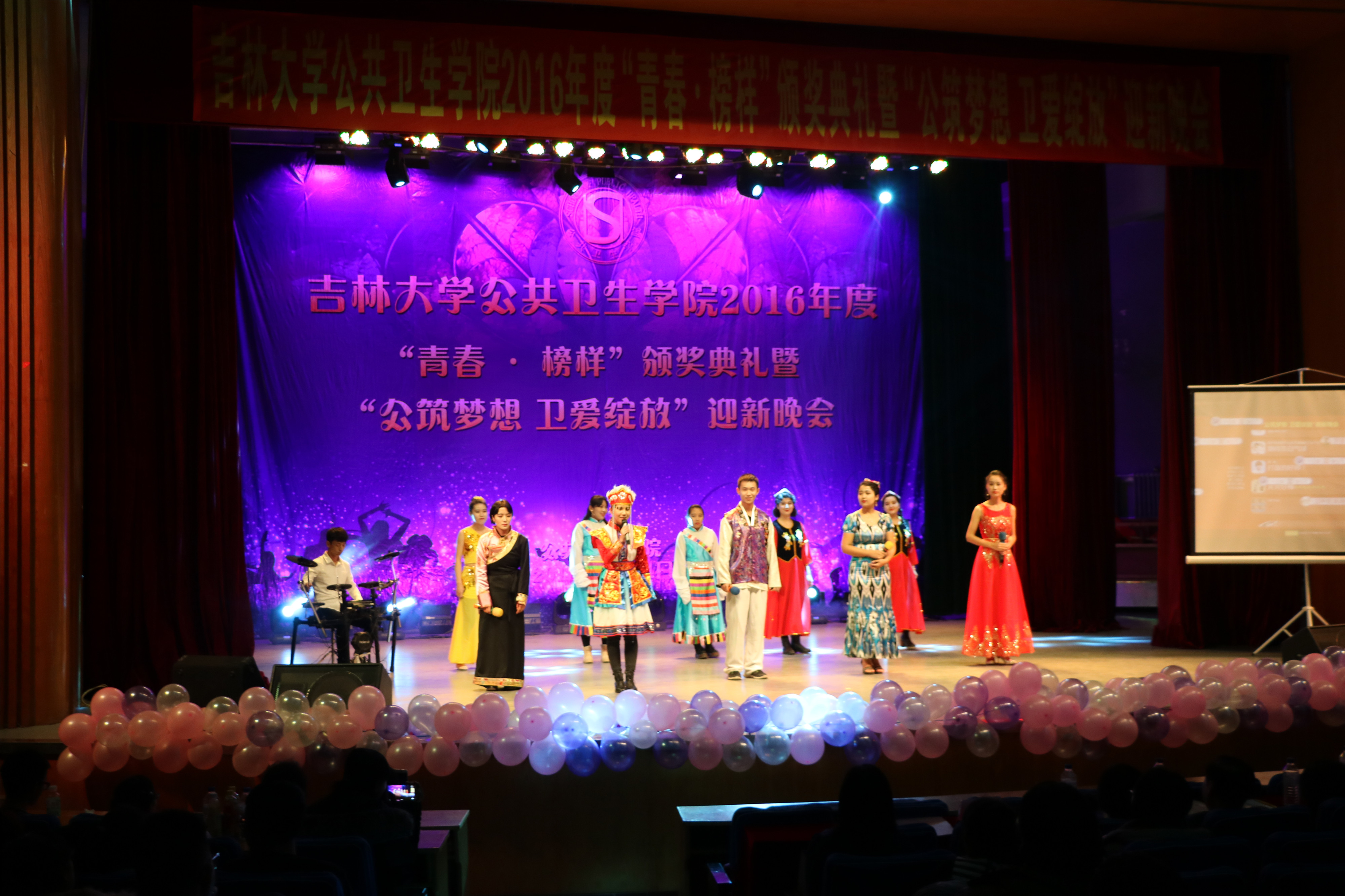 2016年度“公筑梦想 卫爱绽放”迎新晚会的高潮。整场晚会呈现的节目精彩连连:歌曲《陪你一起看草原》和民族歌舞串烧《喜欢你》为观众呈现了多姿多彩的民族文化,营造出民族融合、共同进步的和谐盛景;诗歌朗诵《祖国,我亲爱的祖国》字字铿锵有力,句句掷地有声,唤起了同学们深藏心底的爱国情怀;搞笑喜剧《大话公卫》更是以幽默风趣的台词介绍了学院的现状、学科的发展前景以及同学们的校园生活状态;《大学生活》是同学们精彩演绎的视频配音作品,表演方式新颖独特,引起了现场观众的共鸣;歌舞《恋人心》和《告白气球》利用流行元素,烘托出同学之间浪漫的情愫,展现出公卫学子的青春与活力;《相亲相爱》是污污韩漫