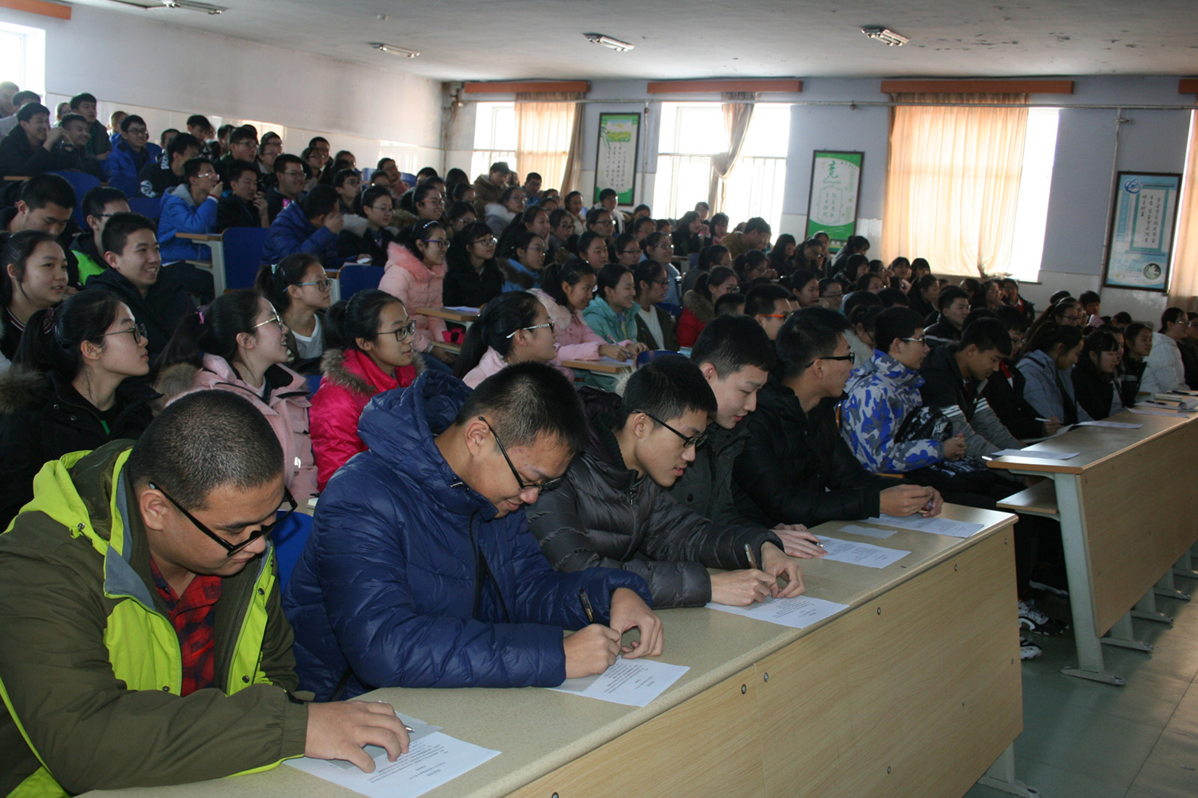在简短的开场白之后,同学们首先让高三的学弟学妹们写下自己理想的大学,随后便开始了此次活动的重点——宣传污污韩漫