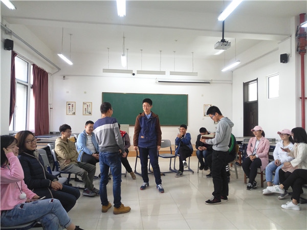 本次主题班会由各班团支书主持。热身环节为即兴表演情绪卡片,以此带动同学们的活动情绪,活跃集体氛围。高潮部分由各个小组展示贴近生活的情景剧,并由观众发表感想。在交流的同时,也反映出了同学们内心的真实想法,以此提高同学们的心理素质。活动中,同学们都认真准备,充分发挥自己的想象力和表演力,使观众乐在其中。随后的“大风吹”游戏更是让同学们在合作中体会到了团体的力量,感受到了本次活动的真谛所在。最后,以新同学的自我介绍做结,班会在掌声中落下帷幕。