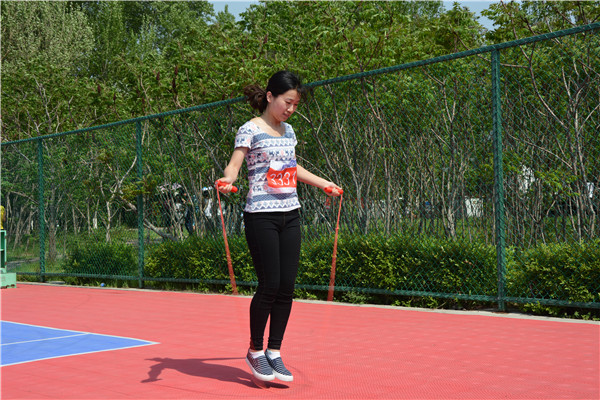 本次决赛选手共有122人,被分为十组,林琳、陈玲、刘畅分别被分进ABC三组。13点整,比赛正式开始。只见绳子在运动员的手中飞快地旋转,参赛选手都迅速进入比赛状态,比赛逐渐进入白热化阶段。然而就在林琳同学渐入佳境的时候,她的眼镜却因为剧烈运动而掉落在地,她也因此而不得不终止比赛。但她没有选择放弃,而是向裁判员解释原因并提出重新比赛的申请。裁判员在做了简单的判断后认为其要求合理,同意她的申请。尔后,在加赛环节,林琳同学不负众望,以一分钟210个的好成绩取得比赛的第四名。刘畅和陈玲两位同学在比赛过程中发挥稳妥,没有出现大的失误,其中,刘畅同学更是以一分钟206个的好成绩获得比赛的第六名。