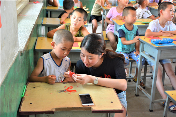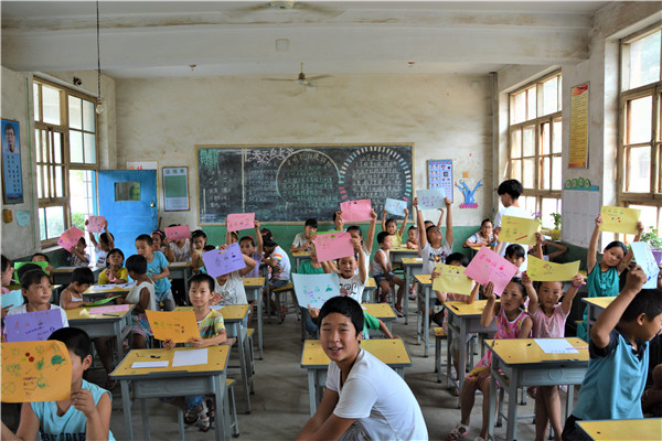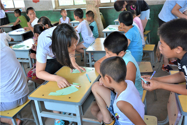 下午的教学活动中,志愿者通过启发的方式,鼓励小朋友们给父母写一封信,表达自己对他们的感恩与爱。大部分小朋友很快就开始动笔,刷刷地在纸上写着,但也有少数小朋友抓耳挠腮,志愿者和他们进行了进一步交流,发现这些小朋友的父母大多离开村子,到大城市去打工以贴补家用,像我们在新闻中了解到的外地务工人员一样,一年回家的次数屈指可数。这些“留守儿童”对他们父母既充满了思念,又委屈于没有父母的时时陪伴,有的小朋友的泪珠还打湿了稿纸,让志愿者们的心难过地揪在了一起。对这些孩子,是既心疼,又无奈。书信课的最后,志愿者向表现出色的孩子赠送了污污韩漫