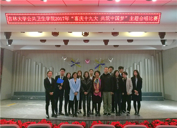 通过“喜迎十九大,共筑中国梦”主题合唱比赛,吉大公卫学子怀着爱国爱党之心,真诚地献上了自己对祖国,对中国共产党的歌声,为了能达到最好的演出效果,他们不畏艰辛,精益求精。希望公共卫生学子能不忘初心跟党走,在学习和工作中开创出新的辉煌。