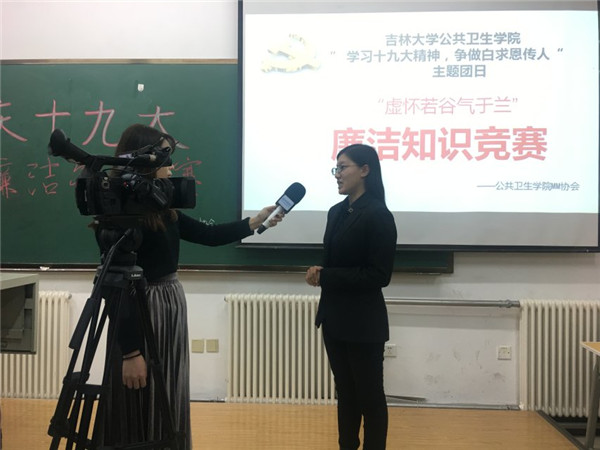 本场比赛不仅增进了同学们对廉政文化知识的了解,还帮助同学们学习、理解了“中共十九大”精神,在同学中营造了“争做白求恩传人”的良好氛围。颁奖结束后,2016级辅导员霍睿总结了此次活动,并就习近平总书记在中共十九大开幕式上进行的报告发言畅谈了自己的心得体会。她表示,总书记长达3个半小时的发言字字珠玑、振奋人心,让我们感受到了国家的日益强盛、民族的日益强大,这就要求我们青年一代“不忘初心,牢记使命”,有理想、有本领、有担当,为中华民族的伟大复兴贡献自己的青春力量。