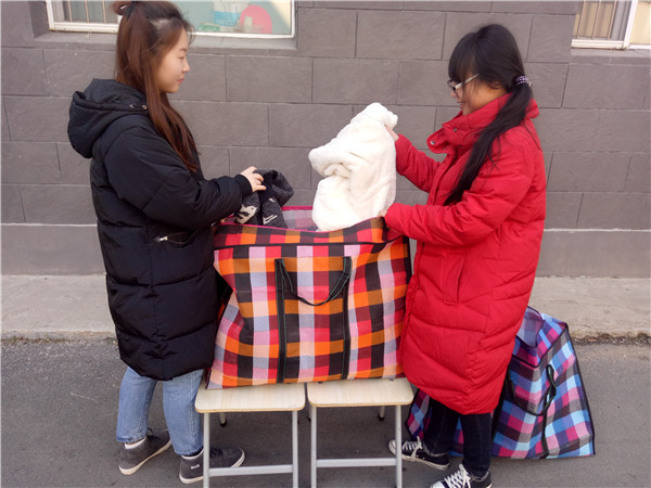 本次活动采取“走寝室”的方式,将志愿者分为三个小组,在一公寓、三公寓、四公寓同时展开活动。活动伊始,同学们就积极响应了这次爱心活动,有部分同学提前整理好衣服,等待志愿者去收;还有的虽然没有准备,但听到有志愿捐衣活动,就立即收拾出闲置衣物,交给志愿者。活动期间,每名志愿者都热情高涨,耐心地走过每一间寝室,被一件件衣物填满的不仅仅有装衣物的袋子,还有每个参与活动的同学的心。
