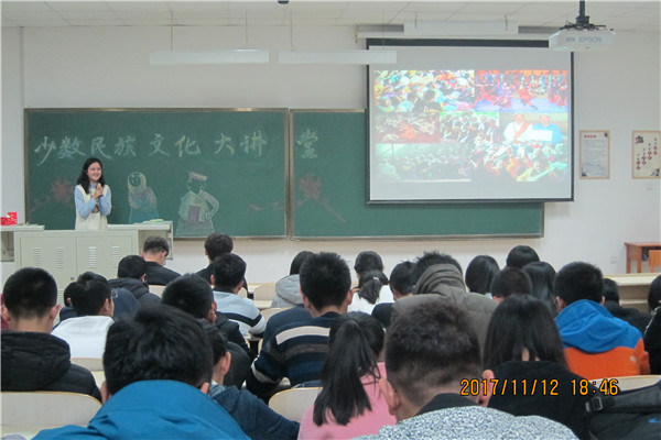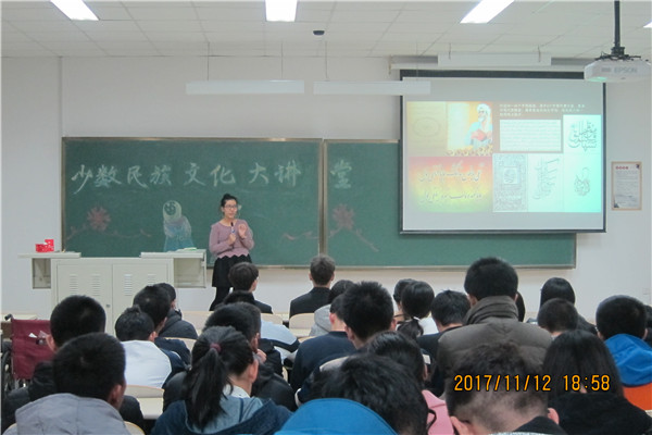 18时30分,活动正式开始。现场座无虚席,同学们都期待着主讲人的精彩演讲。首先,2017级赛比娜·迪丽夏提同学为大家讲解了维吾尔族特有的服饰、美食和建筑,她讲解地认真、细致,将服饰的特点详尽地展示在大家眼前,馕、茶、烤肉等美食也令人垂涎欲滴。接下来,2017级迪丽亚尔·艾尼宛同学介绍了维吾尔族的风俗习惯和传统节日,其间阿依努尔和玛依努尔同学还带来了一段精彩的维吾尔族舞蹈,二人配合默契,舞姿优美。同为2017级的麦和苏坦·图尔荪同学,为大家介绍了维吾尔族的文化和体育,并重点讲解了维吾尔族的足球运动的发展和佳绩,她动情的讲解赢得大家热烈的掌声。最后,赛比娜同学对本次活动做出总结,并呼吁同学们摒弃世人对维吾尔族的误解,重新了解新疆。