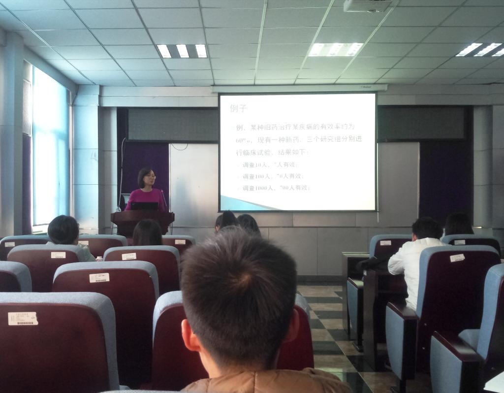 流行病与卫生统计学教研室金丽娜老师主讲的大学生创新实验沙龙第三期“概率统计与医学”讲座,在新民校区学院三楼报告厅如期举行。讲座内容以概率统计在医学方面中的应用为主,并辅以之前结项的大创项目实例以进行详细的介绍讲解。