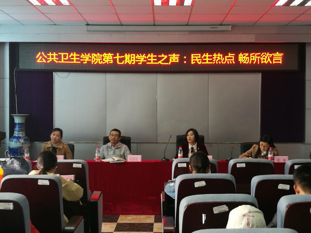 于学院三楼报告厅顺利开展第七期“学生之声”主题沙龙活动——民生热点 畅所欲言。公共学院党委副书记兼副院长、2014级辅导员刘丽,团委书记兼2015级辅导员苏国范,2017级辅导员郭倩君和2016级辅导员霍睿出席沙龙,各班学生代表参加了本次活动。