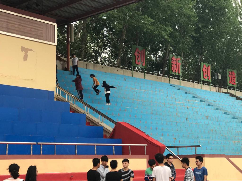 团委学生会体育部同学指导。训练内容如下:准备工作、热身运动、分项训练。运动员们在主席台下一字排开,首先进行简单的拉伸运动,之后是五圈热身跑。随后,在教练的指挥下,运动员们根据项目的不同分别训练,短跑运动员进行快疾的速度训练,长跑运动员进行长距的耐力训练。