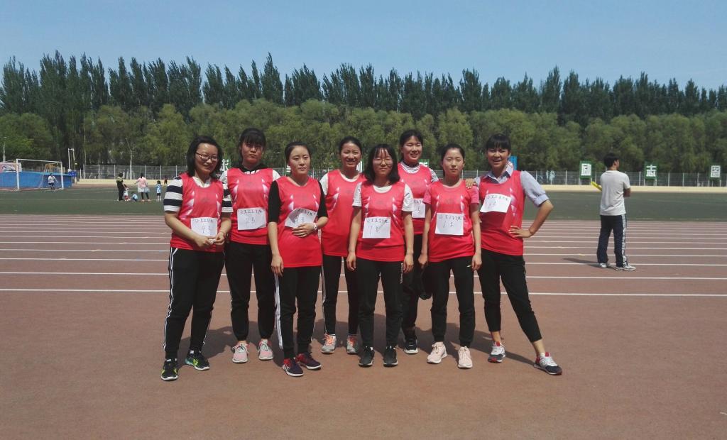 的8位女运动员们身着粉色运动衣在第5跑道依次站好。8个人分为两拨,各站在跑道的两侧,准备来回接力。随着第一声哨响,预防三班的刘燕以最快的速度跑向第二位接力选手,但第一棒的其他选手也来势汹汹,毫不示弱。接着,第二棒的刘鑫乘胜追击,奋力向前冲。跑道两边的呼喊加油声也随之热烈起来。但开始的良好势头没有持续很久,女运动员们虽然发挥出了全部的力气去跑,因为对手也很强劲,所以开门红的局面渐渐转变。但最后一位女运动奋力一搏,没有将比分拉的很大。