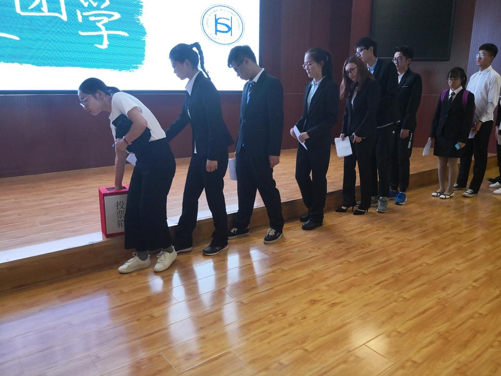 在热烈的掌声中,第34届团学组织部员换届大会正式拉开帷幕。参选同学纷纷就自身工作能力、为部门所做的贡献以及过去一年的收获开展讲述,参选者们热情饱满,发言风格各有特色,现场气氛热烈。经过将近三个小时的竞选,参选同学都很好地展现了自我,并表达了将学生工作越做越好的决心。投票同学也做好了选择,依次将选票投入箱中。