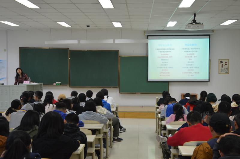 在2018级学生热烈的掌声中,杨劲松老师开始了本次精彩的宣讲。首先,杨老师希望2018级同学们能够以正确的态度看待性行为,不要谈性色变,正视并了解性知识,从而更好地学习如何有效地预防艾滋病的知识。杨老师告诫同学们虽然性是美好的,但要对自己行为和身体健康负责任。随后,杨老师谈到了因意外怀孕进行药物流产对女性身体健康带来的危害,进一步强调了安全的性行为的重要性,加深了同学们对性安全的认识。最后,杨老师重点介绍了艾滋病传播的三种途径,一是性接触传播,这也是目前造成大学生感染艾滋病的最多途径;二是血液传播,使用消毒不彻底或未消毒的注射器、针头、剃须刀等;三是母婴传播,受艾滋病病毒感染的孕妇将病毒传染给婴儿。同时,杨老师还详细讲解了预防艾滋病的措施,希望同学们牢记于心,为抑制艾滋病的传播贡献一份力量。