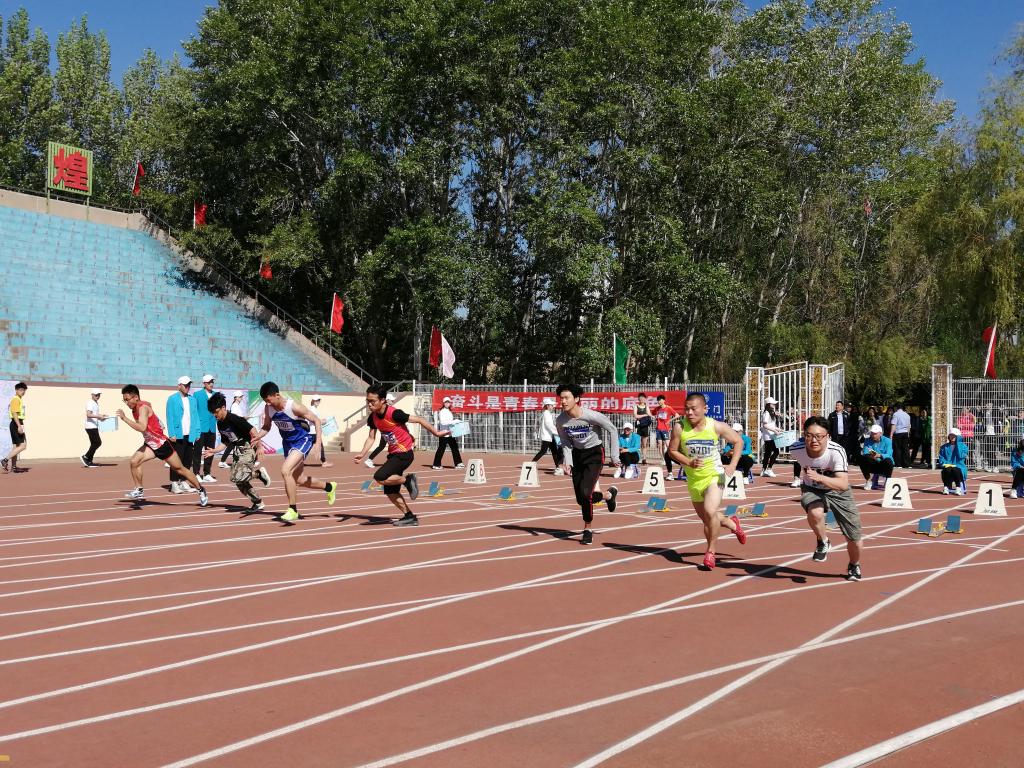 第五十八届运动会学男组100米预赛在中心校区体育场举行。污污韩漫
