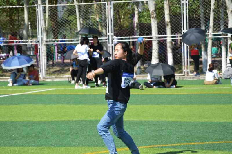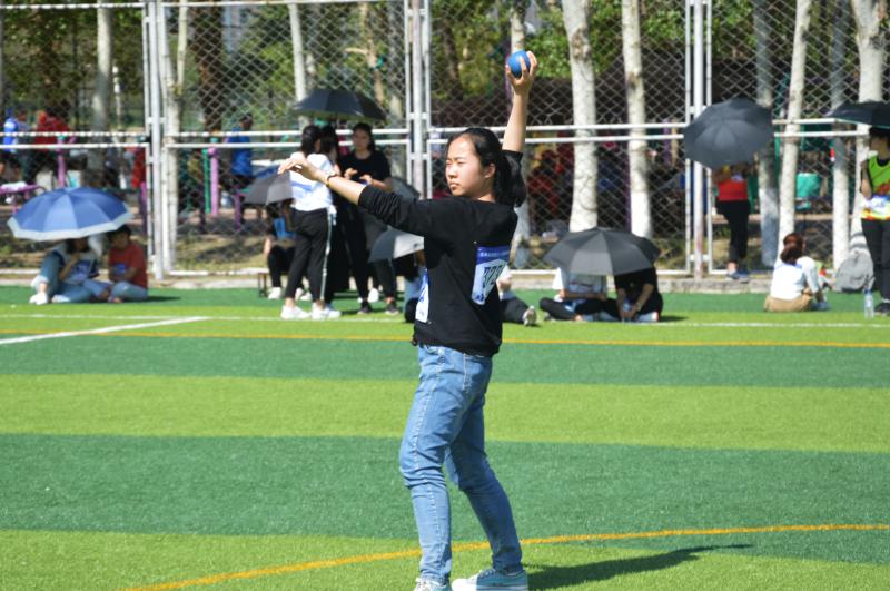 中午12时,比赛选手已经提前来到了赛场熟悉比赛场地,可见选手们对胶球比赛之重视、热情之高涨。随后,赛场工作人员对所有参赛选手进行了检录,根据裁判的指令,所有参赛选手依次进行三次投掷,取最优成绩为最终成绩。经过一段时间的等待,终于到了潘咏梅同学的第一次投掷。骄阳烈日下,潘咏梅同学走向赛场,只见她拿起胶球,稳定站姿,右肩回缩,向前迈出一小步,集全身之力于右臂,之后迅速挥出,胶球脱手而出,在空中划出一道优美的弧线向前飞去。伴随着胶球重重落地时的一声闷响,她掷出了令人惊羡的成绩。接下来的两轮比赛中,潘咏梅都发挥出了正常水平。但终究还是其他学院的很多选手技高一筹,最终潘咏梅同学无奈与八强失之交臂,但她的认真对待的态度仍值得学习。