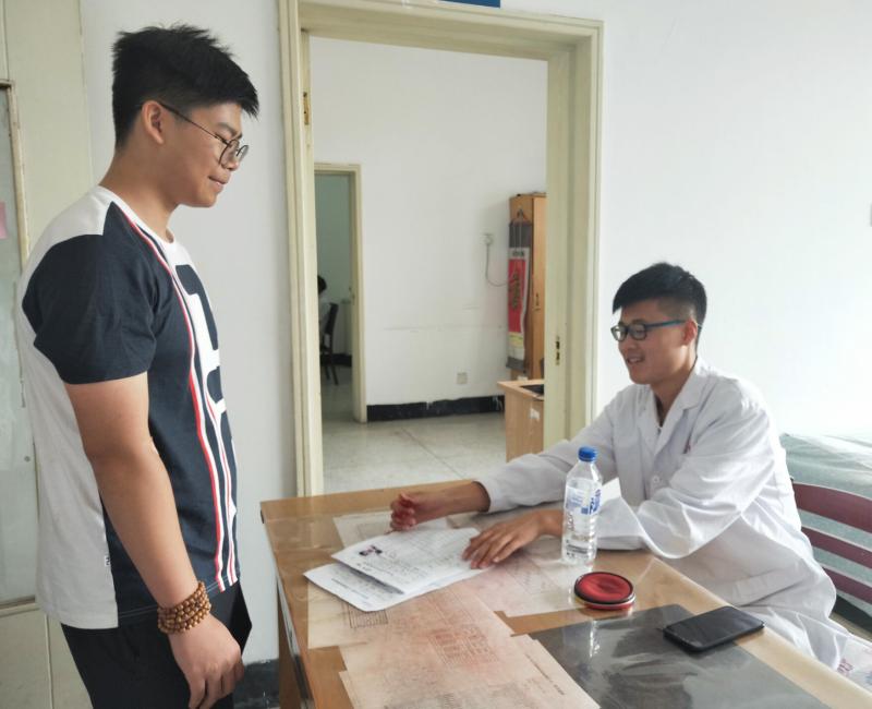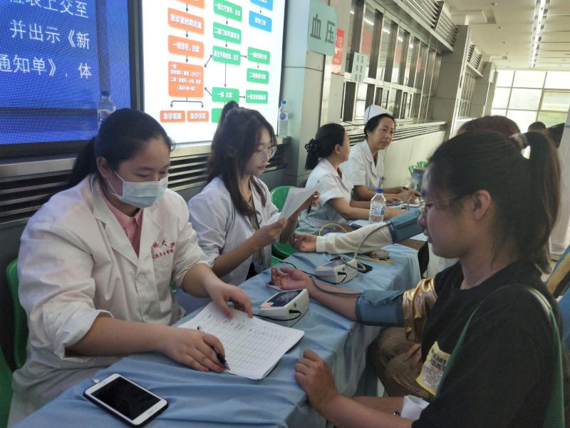 25名志愿者迎着清晨的阳光搭乘公交车于七点半前到达中心校区校医院。新生体检设有身高、体重、胸透、血压、内科、外科等多个体检项目。体检开始前,志愿者被老师分布到不同的体检项目中,随后与老师认真地学习了相关内容和注意事项。